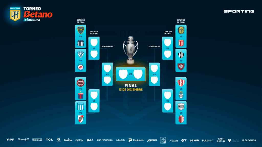 La Liga Profesional de Fútbol de la AFA oficializa la programación de Octavos de Final del Torneo Betano Clausura 2025. A continuación, la grilla de partidos: