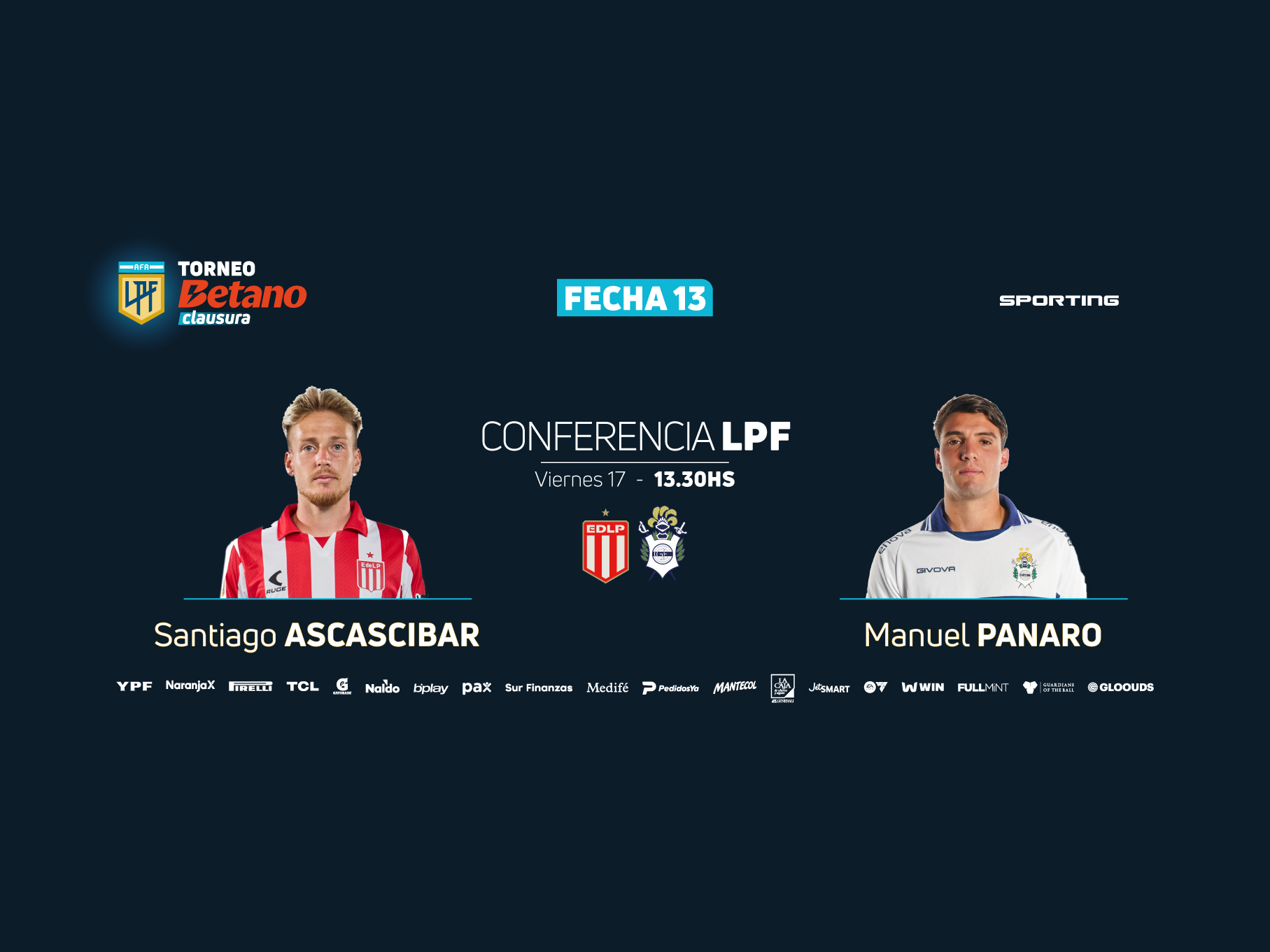 Los protagonistas de Estudiantes y Gimnasia se harán presentes en una nueva Conferencia LPF que anticipará la fecha 13 del Torneo Betano Clausura. Santiago Ascascibar, del Pincha y Manuel Panaro, del Lobo, hablarán frente a los medios el viernes a las 13.30.